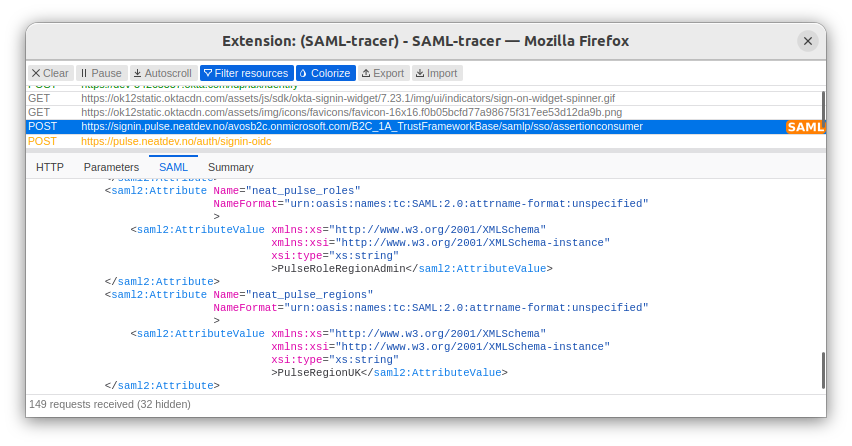 With a SAML tracing tool running, log in to Pulse via SAML SSO again.