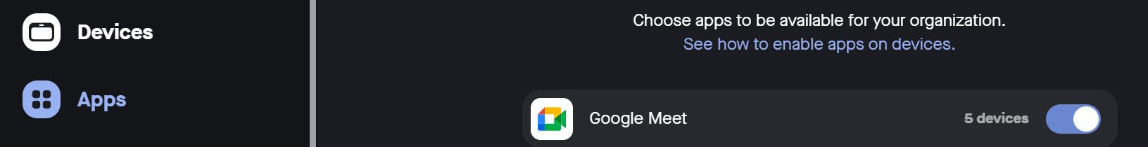 Figure 1. Neat Pulse – Select Apps and toggle on Google Meet