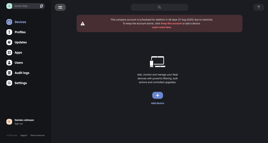 Starting in October 2025, to ensure that Neat Pulse stays secure, streamlined, and free of unused accounts, Pulse accounts that are considered inactive will be automatically deleted.