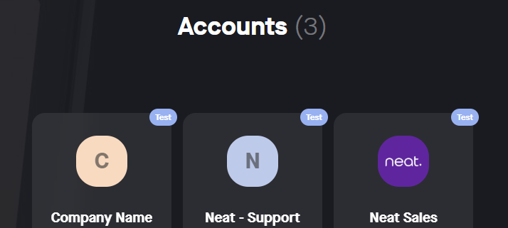In the example below, clicking on ‘Company Name‘ (Figure 5) takes the user to the Account view (Figure 6) where they can view the three accounts that they are member of in Neat Pulse.