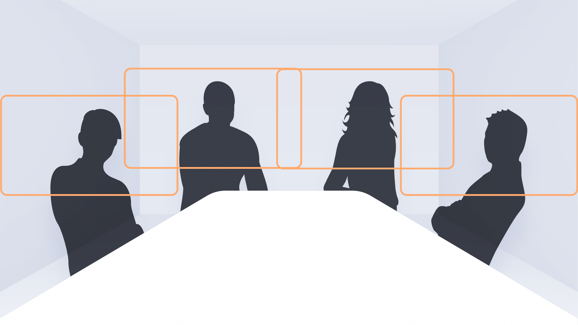This is a general guideline how auto framing will compose the layout based on the number of dynamic frames used. The auto-framing algorithm will make different decisions on how to frame people in different room layouts and in different participant positioning scenarios. For instance, if two participants are overlapping each other from the perspective of the camera (e.g. one person sitting in front of another), the Neat device may choose to put them in the same video frame.