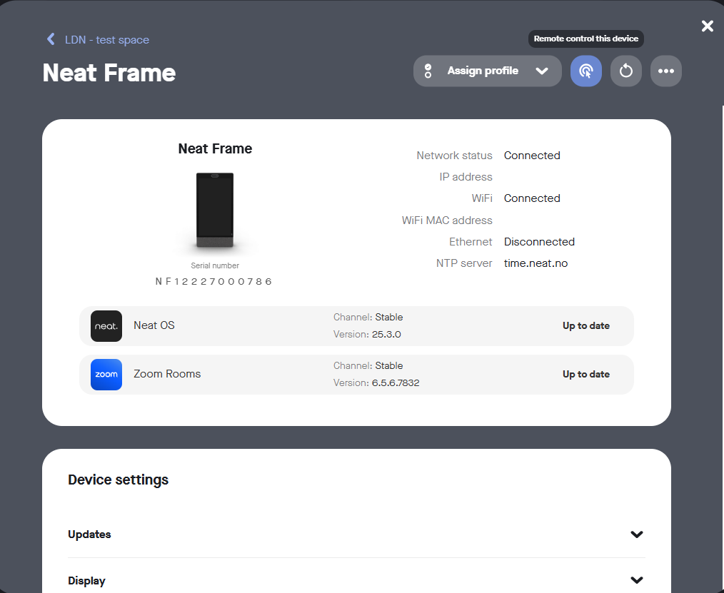 Neat Pulse owners can use the remote control feature on any device in their account. Admins can use it on devices within their assigned region.